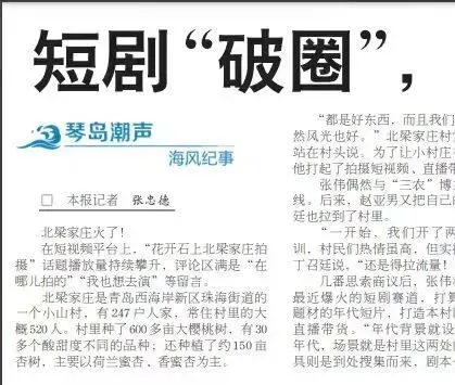 目前,该村已成功拍摄4部微短剧,第五部正在紧锣密鼓筹拍中,剧组主创人员应邀参加“抖音星娱计划”年度庆典,乡村影视基地建设规划也已提上日程,多个剧组前来洽谈并有意入驻,黄海学院等高等院校纷纷签订校地协同发展协议,微短剧产业发展中心正在紧张筹备中。