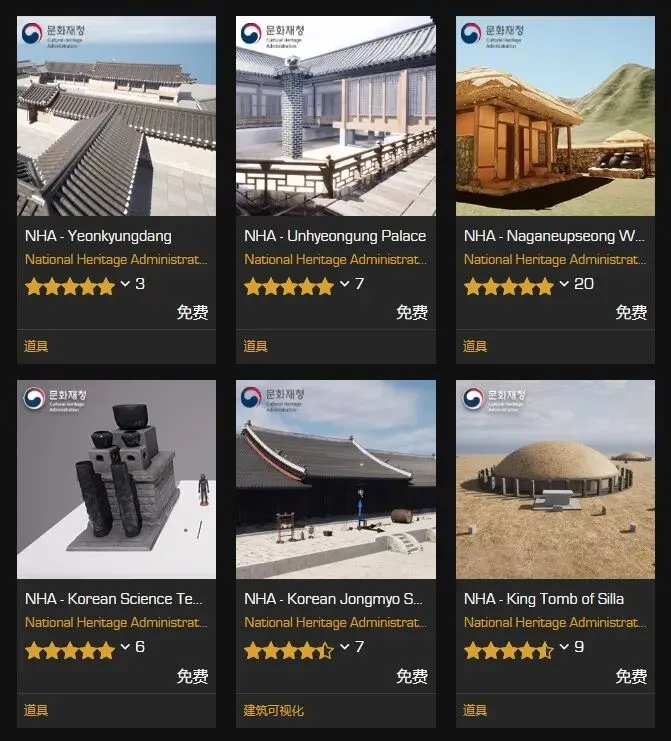 自去年年底开始,虚幻引擎的官方商店里出现了一个高产的新人作者。他的ID叫做NHA,全称为韩国文化遗产管理局,是一个韩国政府机构。