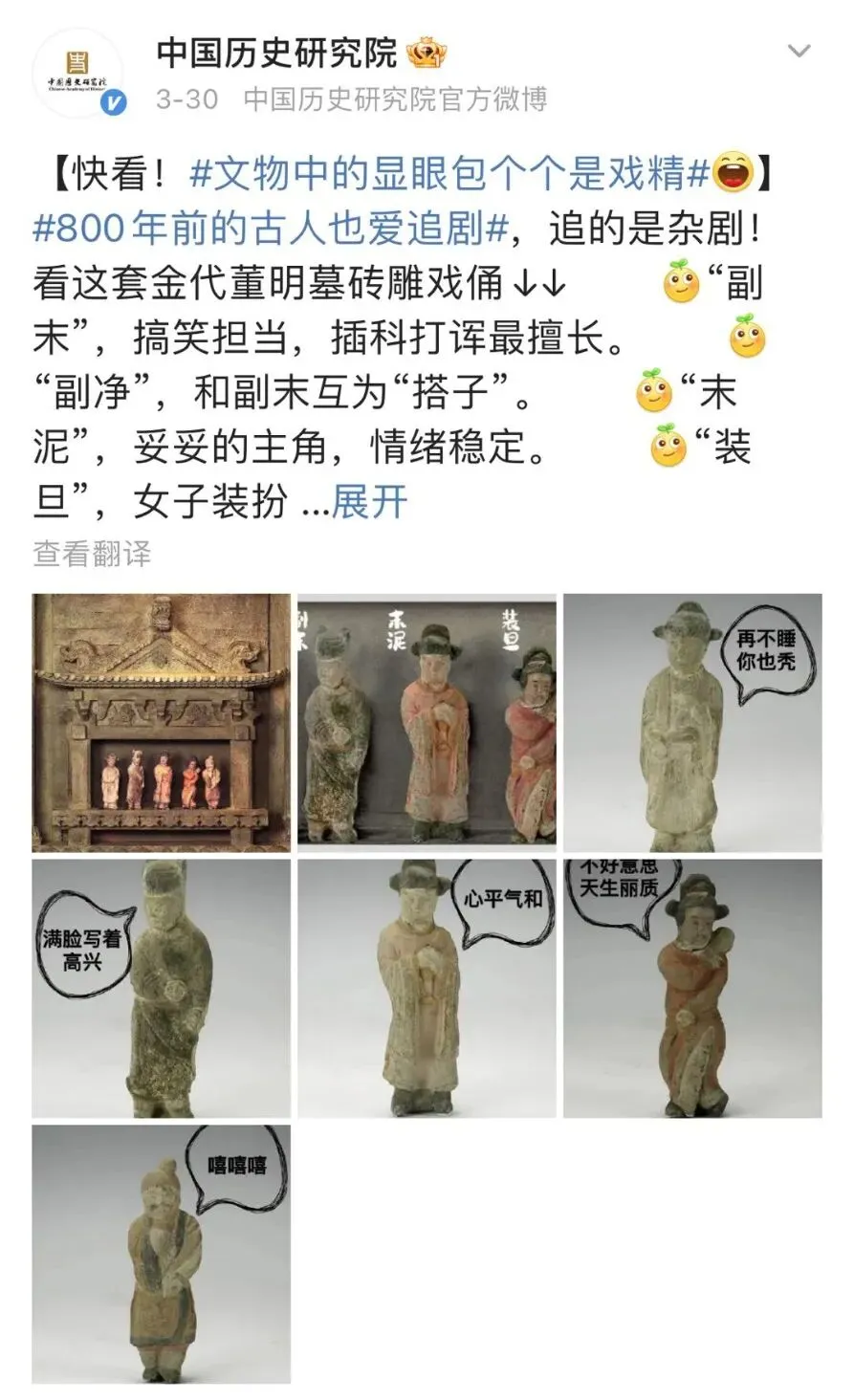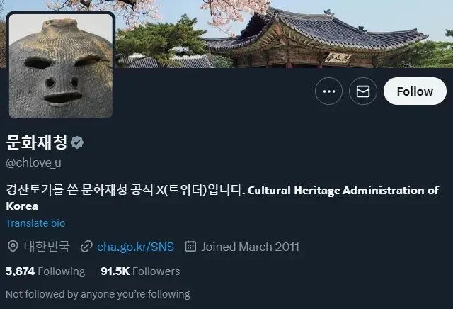 打开他们的官方X,从头像上就能看出他们有多懂互联网。这个代表着政府组织的帐号,并没有使用官方会徽当做头像,而是选用了一件颇有网红感的出土文物——长着卡通脸的庆山陶器。