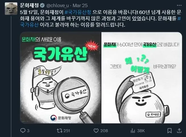 大部分情况下,这个账号都是在一本正经地推送些韩国文化和文物保护相关的科普内容,体现着官方账号的严谨性。但是每隔几条一脸严肃的推文后,又会用漫画这种“更容易被现代网友消化”的形式打破沉闷。