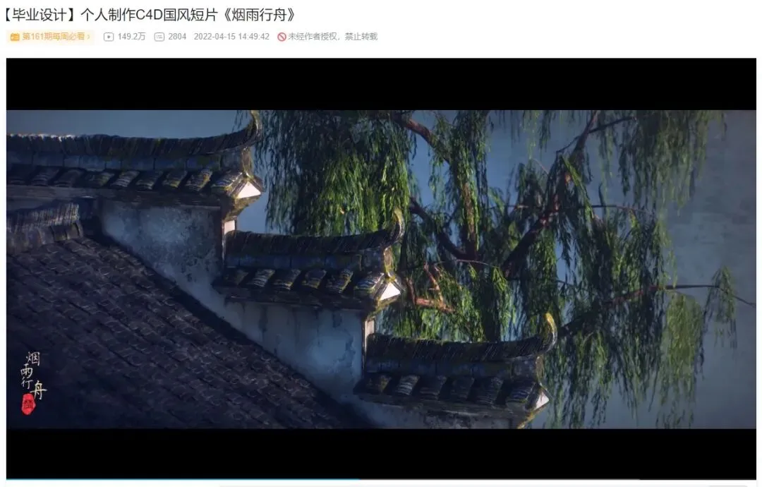 两年前他刚刚毕业的时候,就曾凭兴趣选择了中国风短片作为自己的毕业设计。后来他把视频上传到在B站,很快就收获了170万播放量。