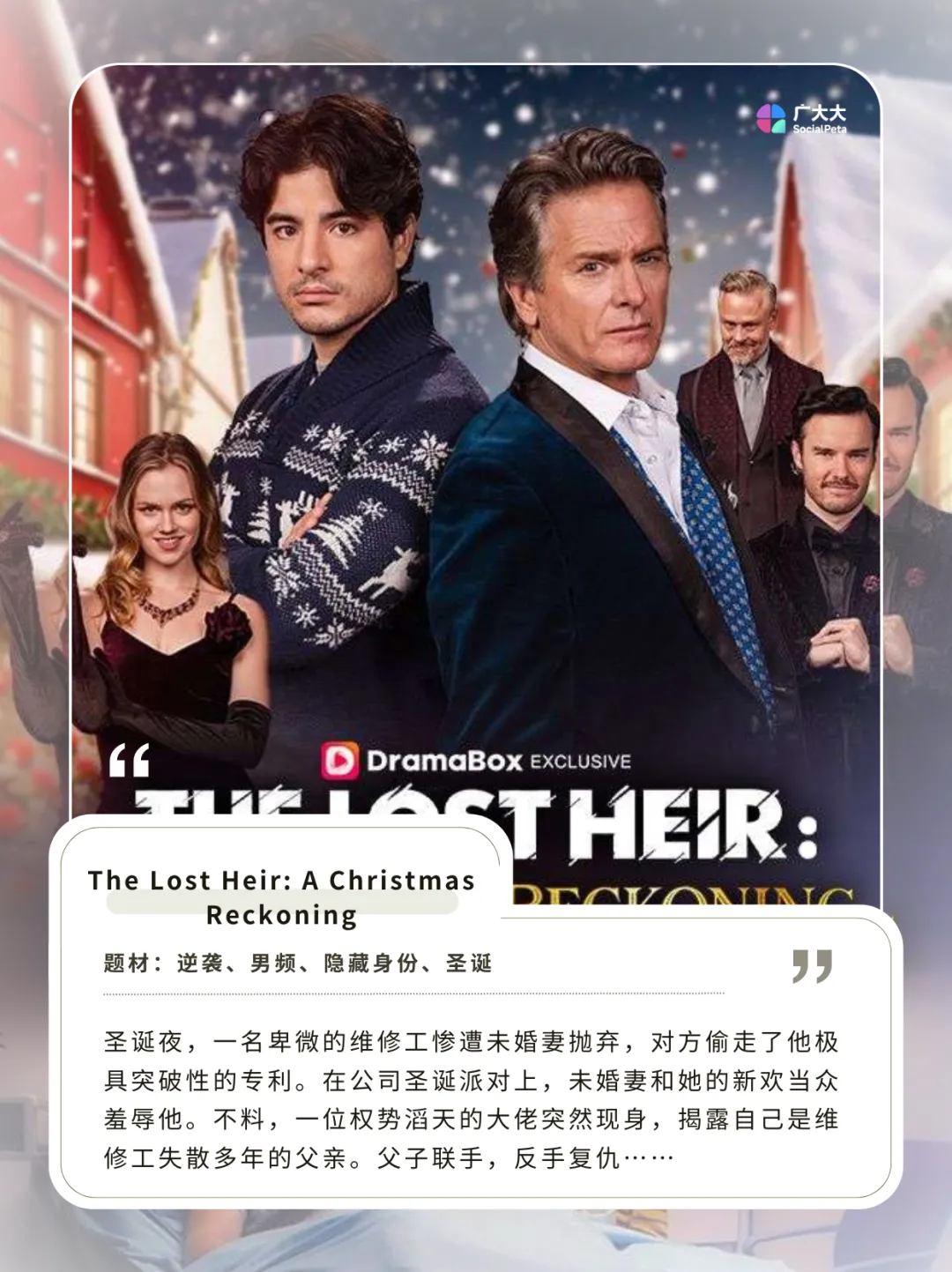 整体看下来,这部剧的核心思路便是用圣诞夜、彩灯等强符号快速锚定节日氛围,同时套用海外已经验证过的逆袭复仇+身世反转的成熟爽剧公式,快速产出圣诞系列内容,既能蹭上节日营销大车,又能在一众温馨剧中凭借差异化脱颖而出。