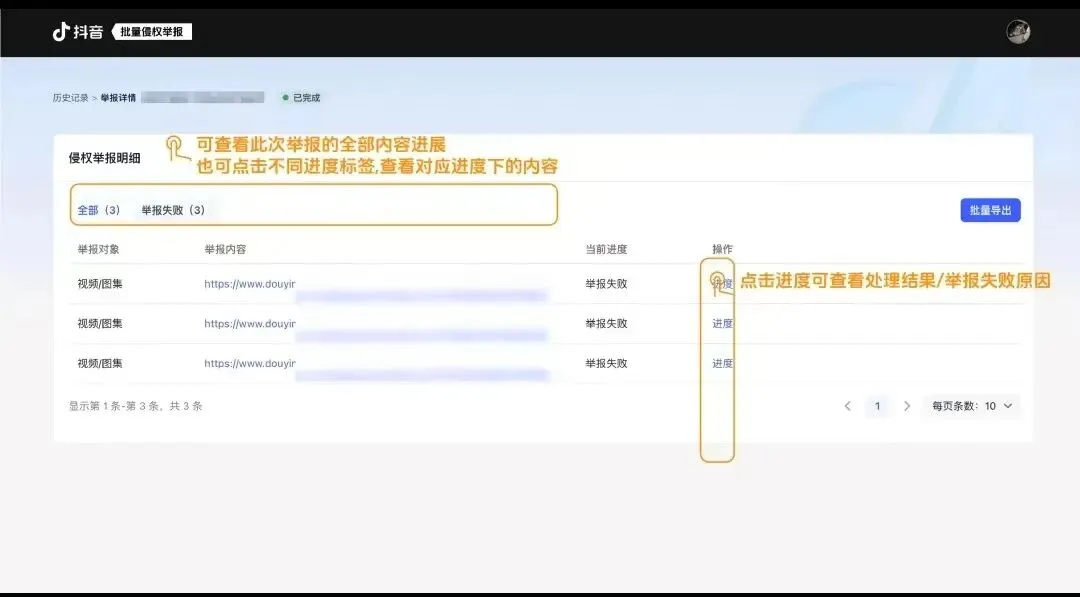 • 抖音批量侵权举报工具升级,一键提交2000条举报,维权效率大幅提升
