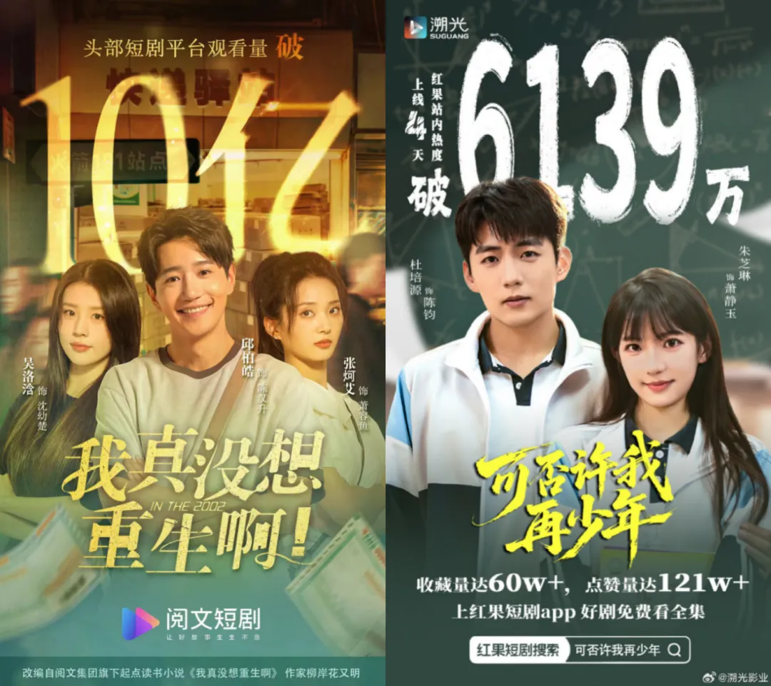 作为男频恋爱的扛鼎之作,《我真没想重生啊》2021年完结,此后又经过了有声与漫画开发,故事人物深入人心。短剧版在红果一经上线便登上热搜榜、男频榜前列,上线一周播放量突破10亿。同期,还有另一部原创的男频恋爱短剧《可否许我再少年》,走的是口碑热议路线,在民间获封最新“男频细糠”。
