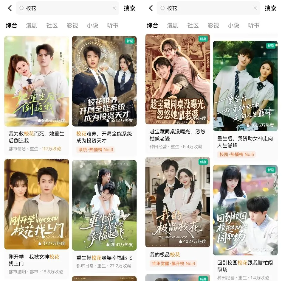 短剧连着漫剧的火热,将IP转化的速度提升了不止一个台阶,网文边连载边视听化成为新常态。如此一来,影视与网文之间的时差大大缩短,那些长剧里未经验证、不敢碰触的新潮流,经由短剧加速进入大众视野。就比如,在阅文入场短剧两年后,《2023网络文学十大关键词》中最令人啧啧称奇的“男频恋爱”也拥有了真人版(《男频甜宠,走进中华直男的隐秘幻想》),在年末短剧市场掀起了不小的风浪。浪尖上的便是阅文自主出品的起点大IP《我真没想重生啊》。作为男频恋爱的扛鼎之作,《我真没想重生啊》2021年完结,此后又经过了有声与漫画开发,故事人物深入人心。短剧版在红果一经上线便登上热搜榜、男频榜前列,上线一周播放量突破10亿。同期,还有另一部原创的男频恋爱短剧《可否许我再少年》,走的是口碑热议路线,在民间获封最新“男频细糠”。出现在2025年底的男频恋爱爆款,是年底的压抑总爆发、孤单寂寞冷,还是类型的发展、男频的成熟?我们发现,在男频恋爱热播的背后,是不断涌入的男性短剧观众与越发全面的男频短剧谱系。而从都市恋爱到历史传奇,种种新风尚都似是故人来。《我真没想重生啊》讲述了35岁的“社会精英、钻石单身汉”陈汉升重生回到初入大学的2002年,踩在电商和物流的风口上成就一番事业,并与上辈子爱而不得的萧容鱼、遗憾错过的沈幼楚展开一番感情纠葛的故事。《可否许我再少年》讲述了商业大佬陈钧重生回到读高中的2008年,再遇有遗传病的白月光萧静玉,终其一生试图拯救她于早逝命运的故事。是不是觉得设定“略像”?必须说明下,不是这两部爆款撞了档期又撞了剧情,而是“都市重生+日常恋爱”本就是男频恋爱文中最经典的一脉,2025下半年涌现的这批男频恋爱短剧大多落在这一类:遗憾中登重返青春,怀旧零零校园背景,不当舔狗女神自来。事实上,自2024年开始,已经有一些男频年代重生短剧尝试在情感方向掘金,如《重生:带着妻儿走向致富路》。都市重生在创业爽感上稍逊,但无疑代入感更强、辐射范围更广,既能挑动个体对青春的追忆,也能回应大众对“经济上行时期”的向往,最终成功打响了这一品类。那么,在青春怀旧这些共性基础上,《我真没想重生啊》与《可否许我再少年》又是凭什么从同类题材中脱颖而出?答案可能比较出乎意料,不是因为它们更爽,而是因为它们更“虐”。开后宫是常见的男频爽点,然而《我真没想重生啊》既描写了男主如何游走在多位女性之间做时间管理大师,也少见地刻画了女主们被哄被骗、深陷情网的痛苦,在小说连载阶段就是独树一帜的“渣男流”。许多人读到后期,对女主们的心疼已然超过了开后宫的激爽。短剧版也遵循原著精神,并未从女主中择一扶正,而是坚持用修罗场将剧情推向高潮。另一边,许多男主重生拯救旧爱的故事都是以大团圆结局,《可否许我再少年》可能是片方有系列化的底气,大胆采用了开放式结局。男主第二世的拯救以失败告终,制造出许多催人泪下的金句名场面,结尾又以男主再次重生给予观众希望。一个是红白玫瑰,一个是BE美学,显然都比大团圆更令人放不下、更产生讨论欲,从而推翻“沉默的男性受众”定律。更重要的是,女主们的形象都在开虐中得到了更好刻画。因为男主是个想享齐人之福的老油条,沈幼楚的质朴付出才格外惹人怜惜。因为萧静玉是个瓷娃娃乖乖女,她对男主的支持守护才格外令人动容。如此种种,不禁令人感慨男女频恋爱剧何其差异——从长到短,女频胆敢搞开放式结局,大概率要被视为烂尾,主创也少不了一顿好骂,而男频竟然因此获得长尾口碑。同时又何其相似——都在塑造现实中并不存在的理想异性,并且近乎科幻的全心付出无怨无悔。当然,这种差异其实遵循了同一套内容逻辑:类型的基调与对基调的反叛。女频有苦情传统,所以那些大方让女性爽的,当下最容易被女性推崇。男频从来不乏爽文供给,感情上偶尔虐一把,反而能虐到bro们心里。作为最容易靠刺激性内容博眼球的品类,男频在短剧的野蛮生长期曾一度领先。而后就是我们熟悉的正规化流程:监管到来,更安全的女频成为行业投注的重点,“战神”“龙王”纷纷失业。而到了2025年,随着短剧的内容逻辑由偏网文转向偏影视,男频短剧也迎来内容升级与谱系重建。除了正在成长壮大的“谈恋爱”,“上价值”与“搞抽象”是男频短剧的另外两大趋势,由此对应到偶像剧、正剧、喜剧类型里。2025春节档的《老千》便是凭“上价值”取胜,以反赌内核带动牌桌对决、恩怨情仇,为这一年男频短剧的逆袭指出道路。之后《老千》又顺产第二季,成为男频系列化尝试的代表。都市江湖型也由此成为男频正剧的一大分支。除了千术江湖的版图继续扩展(《东北雀神风云》),还有古董江湖(《鉴宝天下》),以及正经八百的热血江湖(《北城枭雄之风起冰城》)。2025下半年,男频短剧迎来了真正的正剧代表,《一品布衣》与《冒姓琅琊》。前者讲述了现代工程师穿越成市井无赖,在乱世中求生、护家、救国的故事,凭家国叙事赢得观众而大爆。后者则是汉语言文学博士穿越至南北朝时期,在朝堂权谋中辗转求生的故事,凭知识含量引发各界关注。这两部是代表却非孤例,红果上还有大把讲述现代人才穿越到古代寒门,走科举升级路线的“状元剧”(《理科状元考科举,强到朕傻