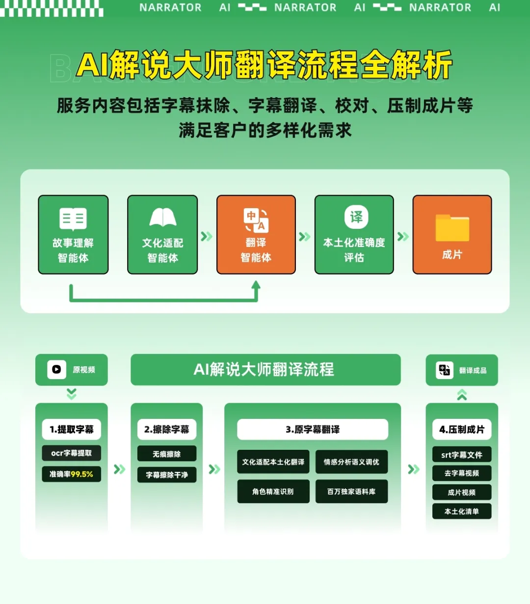 例如AI解说大师的影视级 AI 翻译系统,支持全球