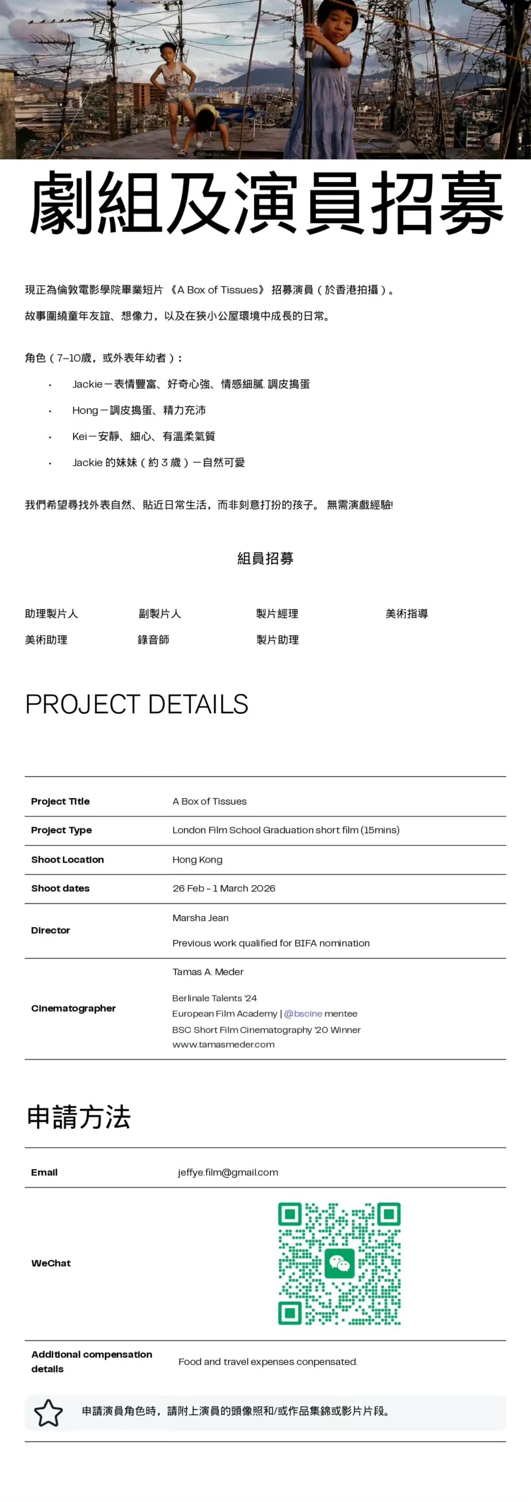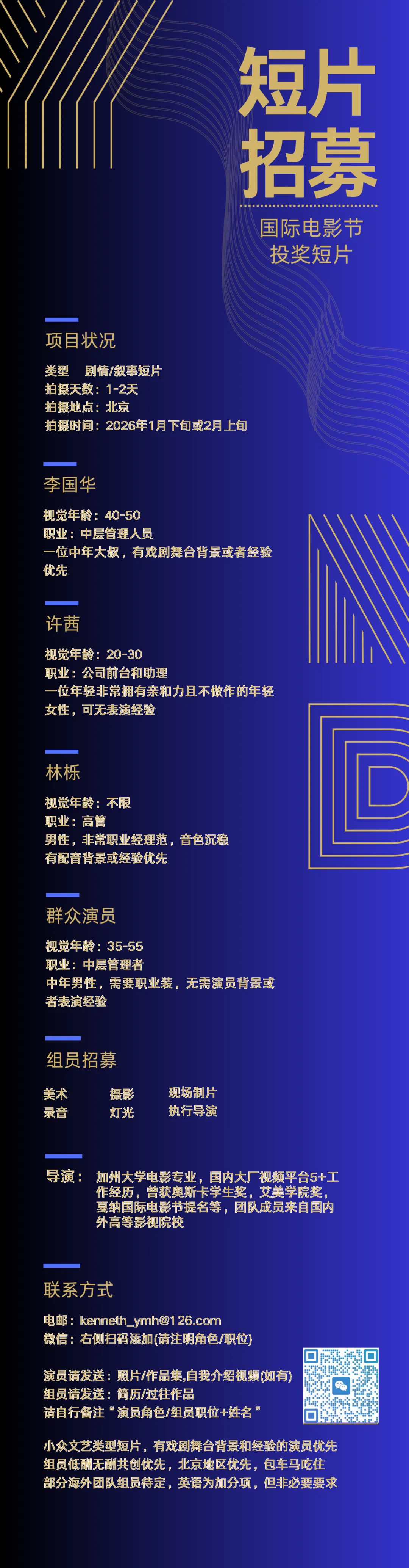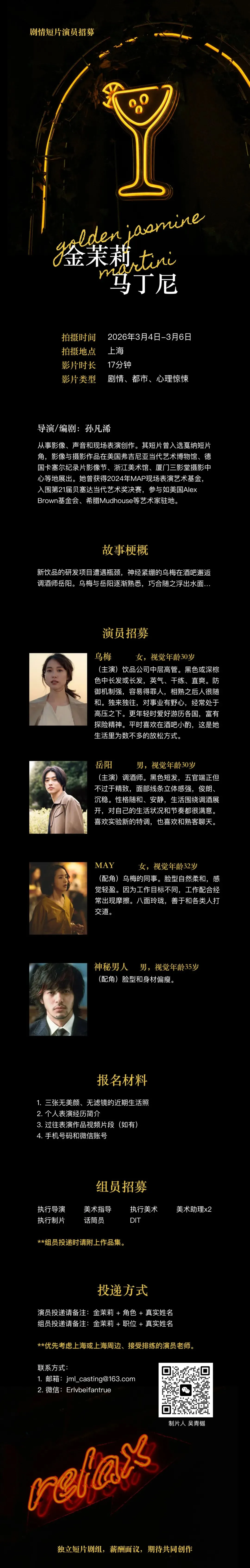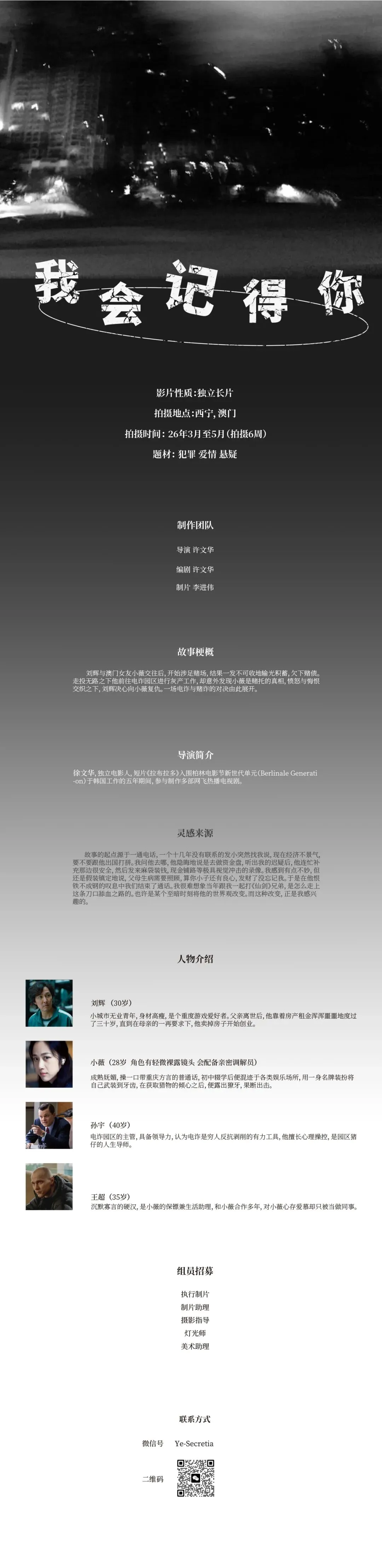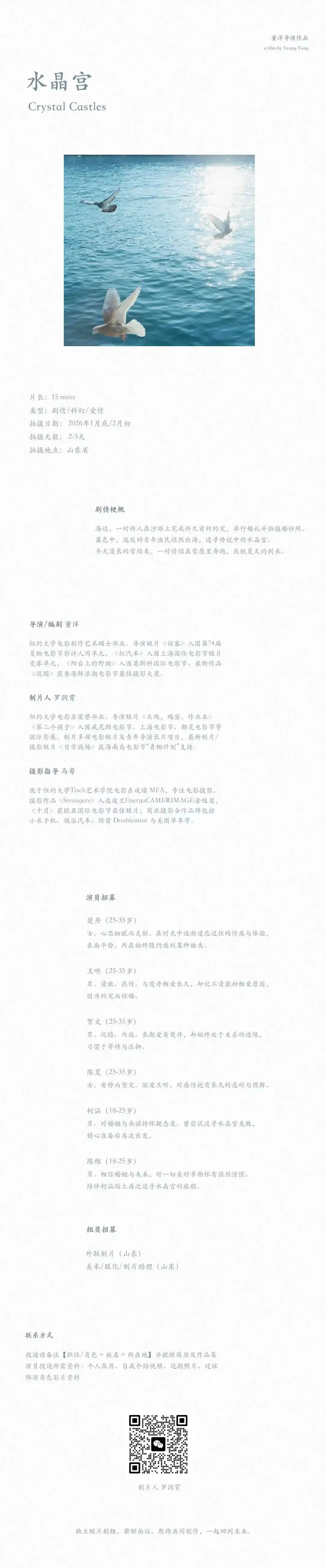吴青樾,导演、制片人,毕业于诺丁汉大学英国文学专业。曾深度参与纪录片——央视网 《人生第二次》、Bilibili《奇食记2》、芒果TV《这十年》以及剧情长片《无名女孩》等大型项目的制作工作。在商业影像领域,曾服务于万科、芭莎艺术、素然、 格兰菲迪、UFC等知名机构与品牌。