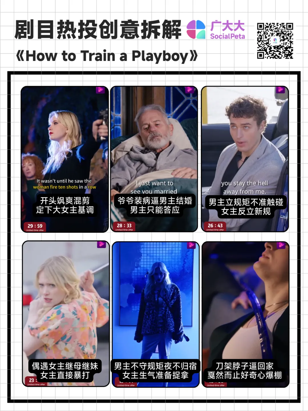 夺命女刺客流亡归来,誓要夺回被窃取的人生。而她最凶险的任务,从非复仇 —— 而是嫁人。上周投放排名TOP3的新短剧为《How to Train a Playboy》,该剧主要围绕女杀手维拉和花花公子迈尔斯的先婚后爱展开,除此之外,女主的背景设定还加入了从小被继母继妹欺凌,以及抢夺遗产等,为这部短剧增加了更多的可看性。