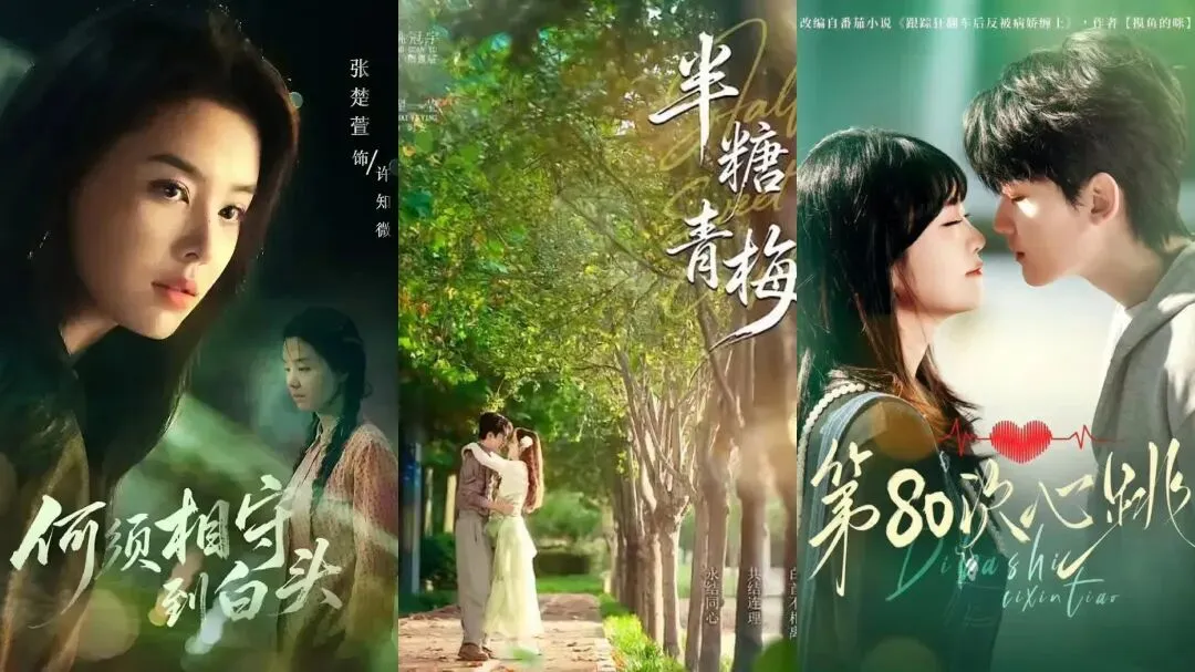 《何须相守到白头》、《半糖青梅》、《第80次心跳》海报