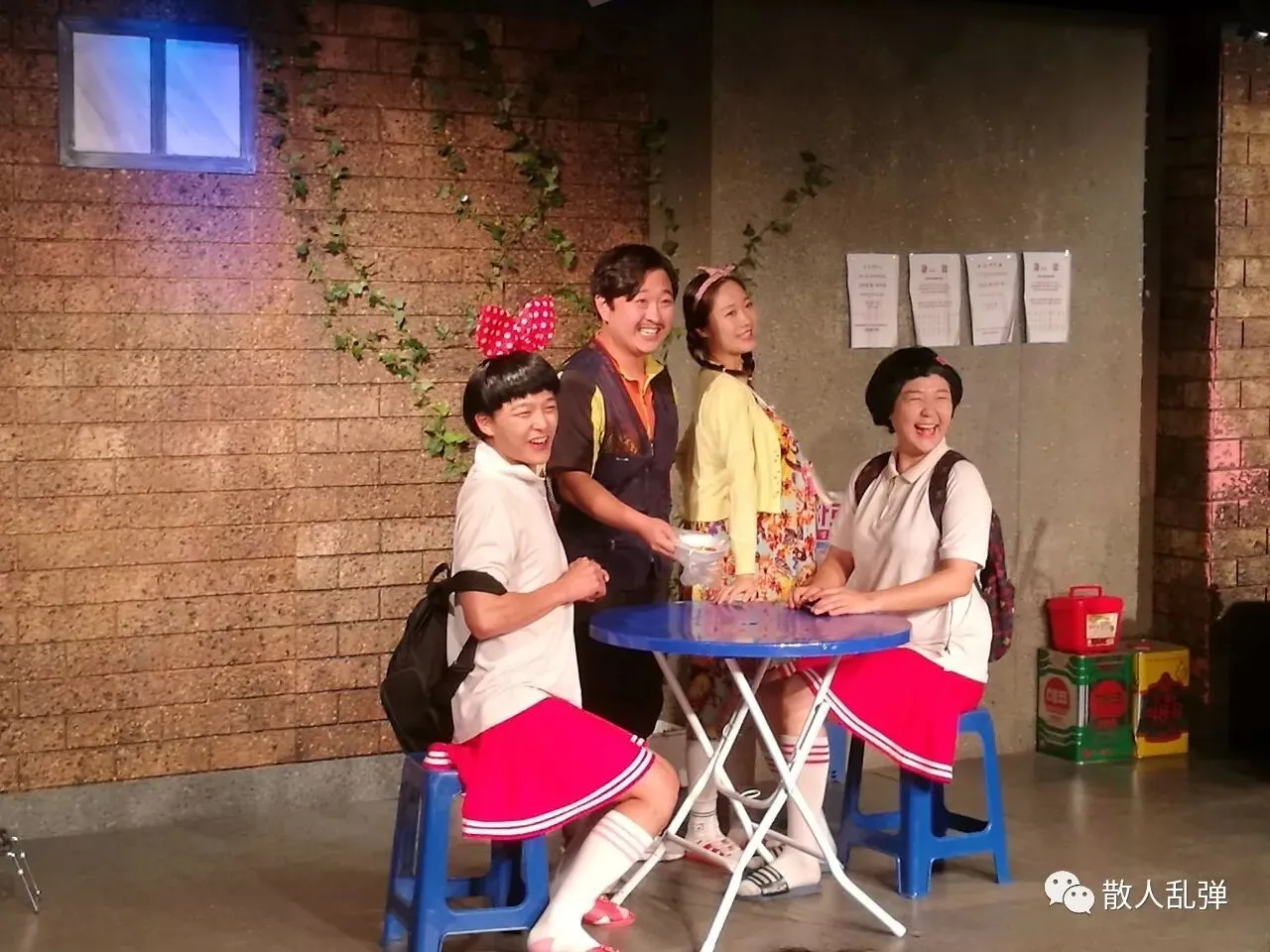 再次,这些戏的制作成本都很低,基本是画几张景片,让观众明白戏剧发生的环境就可以了,灯光也不复杂,符合学生戏剧的特点。如果喜欢戏剧,谁都搞得起。这也是学生戏剧在韩国比较兴旺的原因之一吧。
