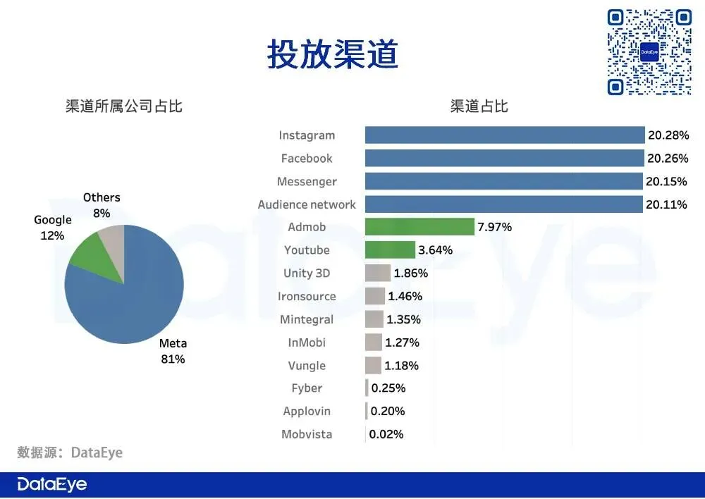 Meta占比超80%,Google与其余媒体占比差别不大仅相差4%。