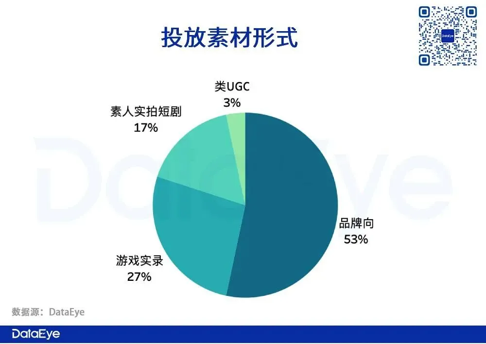 品牌广告推IP,真人视频推社交。总体而言,游戏素材吸睛点很直接。