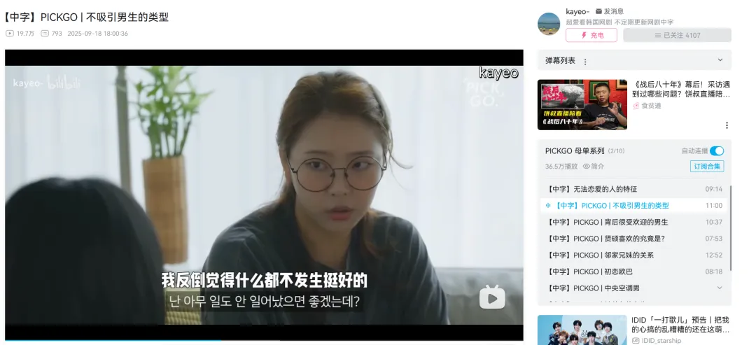 自从在首页刷到pickgo 暗恋篇(前情提要:这部韩短剧拍出了社恐+高敏感+内耗人的内心世界)之后,平台陆续给我推了类似的系列,看了这些韩国人拍的故事会发现,原来有些烦恼是共通的,个人成长、情感关系、人际交往……如果看腻了那些动不动就皇室豪门、重生复仇、穿越异世界之类浮夸的设定,不妨换换口味看看韩国人拍的这些生活化的小短剧: