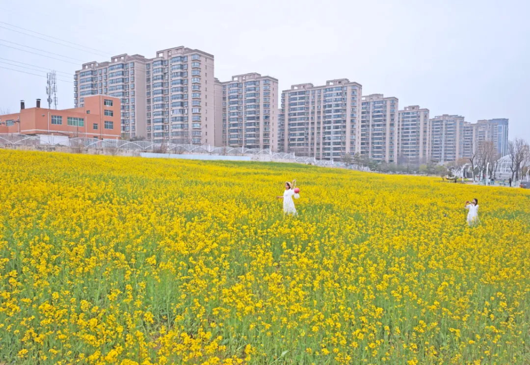 3月25日,西安长安中央公园大片油菜花进入盛花期,金黄的花田随风起伏,明黄花瓣与嫩绿茎叶相映成趣,蜜蜂穿梭其间,生机盎然。市民无需远行,乘坐205路公交至交警韦曲中队站,下车即可邂逅这片城中花海。(文/图 记者 谢伟)