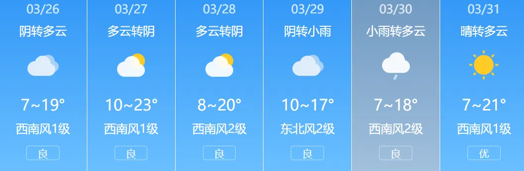 受短波槽活动影响,近期西安市以多云天气为主,最高气温在20℃左右,27日气温直冲22℃,28日白天有5级左右短时阵风;后期29日夜间全市有小雨或阵雨天气。春日天气多变,早晚温差较大,28、29两日需关注阵风和降水天气带来的影响。新一轮降雨要来了!陕西最新天气预报→