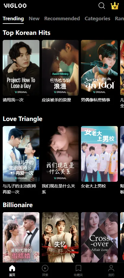 韩国短剧平台Vigloo页面