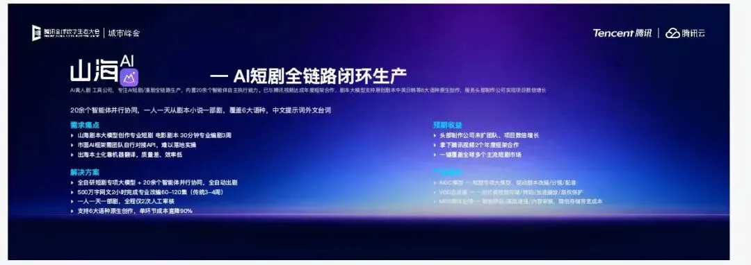 腾讯合作加持、千万热度作品佐证,也说明它已经得到了一定的行业认可。山海万境AI正在做的,不只是一个AI创作工具,更像是在把AI短剧产业里最值钱的那一段内容生产能力,重新搭起来。