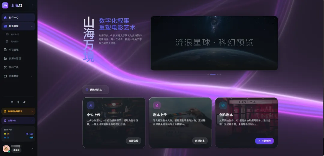 在AI短剧“一键出片”的同质化内卷中,山海万境AI走出了一条差异化路径。它没有把全部筹码都押在速度上,而是把剧本开发、交易流通、分镜制作、工具调度、资产管理做成了一条完整链路,直击行业“优质剧本稀缺”的核心痛点。