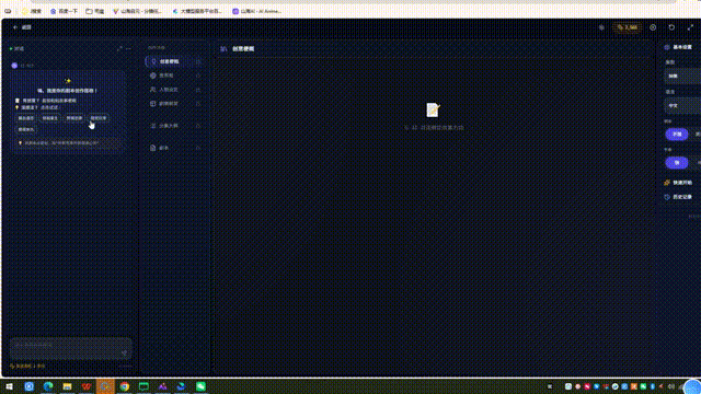 在左侧工作栏中,平台专门给了一个“剧本管理”入口,下面分成“剧本对话”和“我的剧本”两部分。前者解决的是“从0到1怎么把故事做出来”,后者解决的是“写好的剧本怎么沉淀、复用,甚至继续流通”。从产品结构上就能看出来,山海万境AI并不是把剧本当成视频生成前的附属步骤,而是当成整条链路的起点。