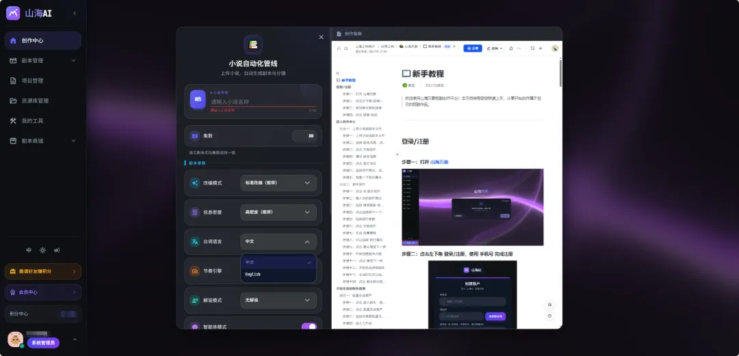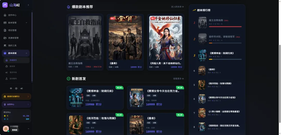 这也解释了为什么,山海万境AI在产品结构里,把剧本管理放得这么重。它不是把剧本当成视频生成前的一道简单前置工序,而是把剧本当成整个平台最核心的内容资产层。