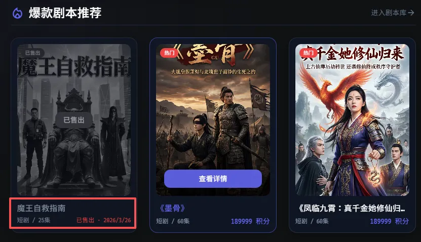 这个信息其实很关键,它说明在山海万境AI这里,剧本不是摆设,也不是展示功能,而是真的有人在买、有人在卖。对于创作者来说,这意味着不是只有“做成视频”才能挣钱,写出一个好本子,本身就有机会先变现。